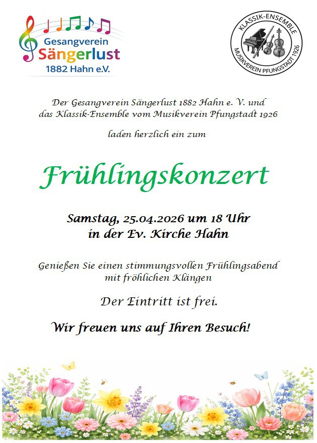 Unsere Proben finden montags um 18 Uhr im Sängerheim, Gernsheimer Strasse 42, Pfungstadt-Hahn statt. Schauen Sie doch einfach mal vorbei!
